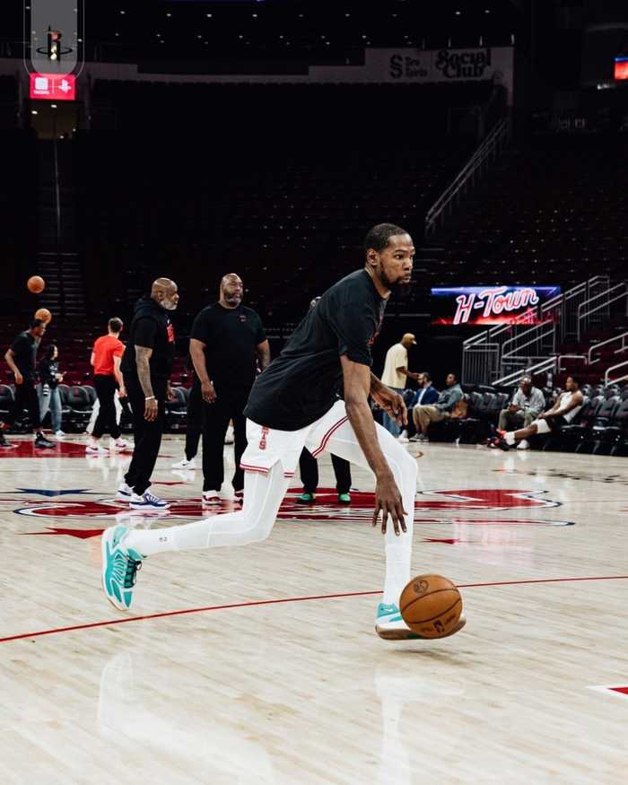第二节火箭30-22反超比分,这一节杜兰特持球突破上篮得分,由于鞋掉了,他只能坐在地板上穿鞋;在反击中暴扣,连续助攻申京以及招牌中投得分;上半场杜兰特10投5中拿到12分3篮板3助攻1盖帽,失误3次犯规1次。