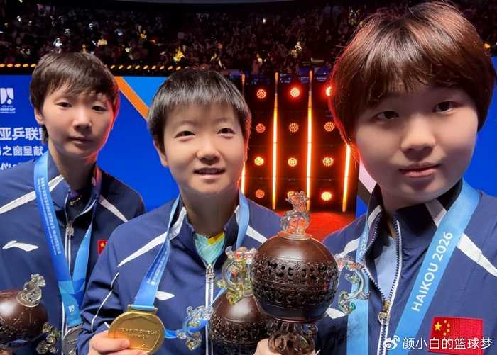 孙颖莎、王曼昱、蒯曼三人包揽了2026年海口亚洲杯女单项目的前三,孙颖莎作为世界第一也首次拿到了亚洲杯女单的冠军,这还是孙颖莎2026赛季的第一枚金牌,养伤57天立马夺冠彰显了世界第一的超燃统治力。