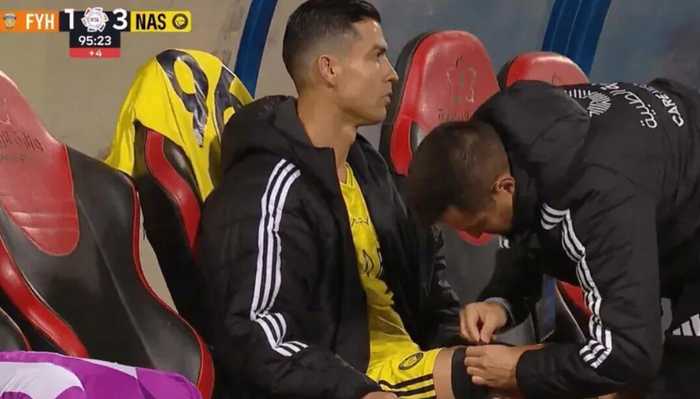 今天凌晨,利雅得胜利在客场3-1战胜费哈,C罗在比赛第81分钟因身体不适被换下,下场后他被拍到坐在替补席上,表情明显感到疼痛,并在受影响的部位敷上了冰袋。
