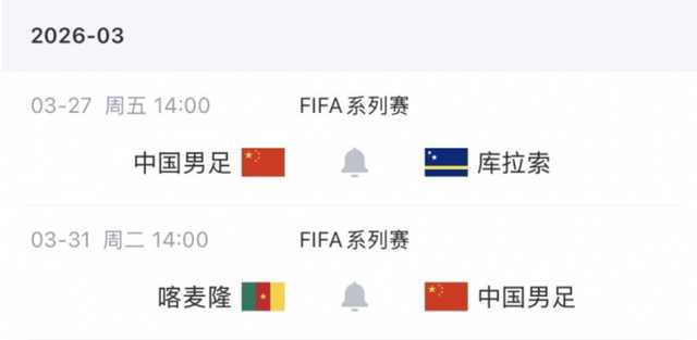 关于系列赛的赛程已经确定,3月27日下午2点,国足迎来首场系列赛,对阵世界杯新军库拉索队,这也是邵佳一接手国足后带队参加的首场正式国际比赛,随后3月31日下午2点对阵非洲劲旅喀麦隆队。
